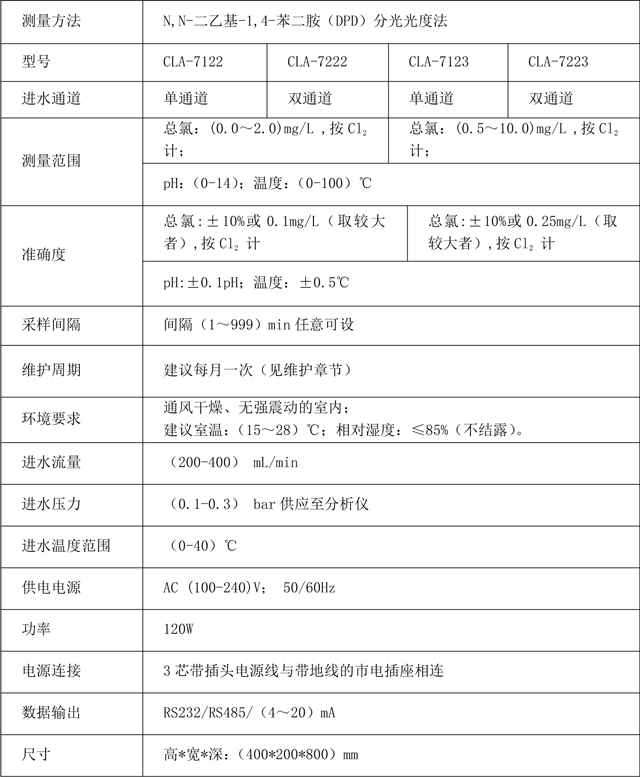 附:CLA-7000系列總氯在線分析儀主要技術(shù)指標(biāo)