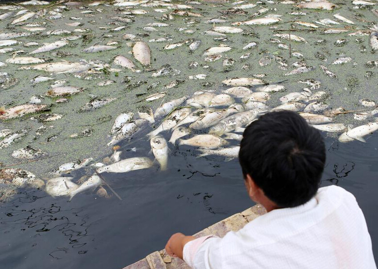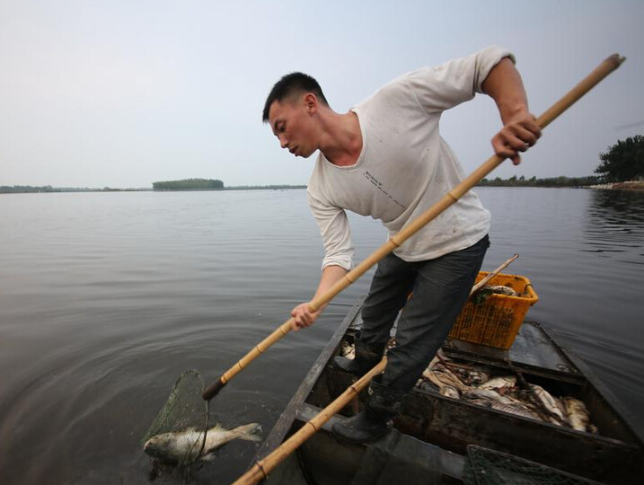 自6月24日,安徽省蚌埠市地區連續降水一周,受上游排水下泄的影響,7月1日開始,懷洪新河流域下游張家湖湖水水質變黑變臭,魚蟹一夜之間漂滿湖面,漁民受災慘重。當地漁民稱,成批魚蟹死亡的原因可能是麥秸秸稈腐爛導致,因當地村民將麥秸秸稈堆放在田間地頭的水渠之中,連日降雨,水渠內的麥秸秸稈長時間腐爛使水質變黑發臭,持續降水引發臭水污水流至張家湖湖內,使湖水水質惡變超標,大量魚蟹死亡。